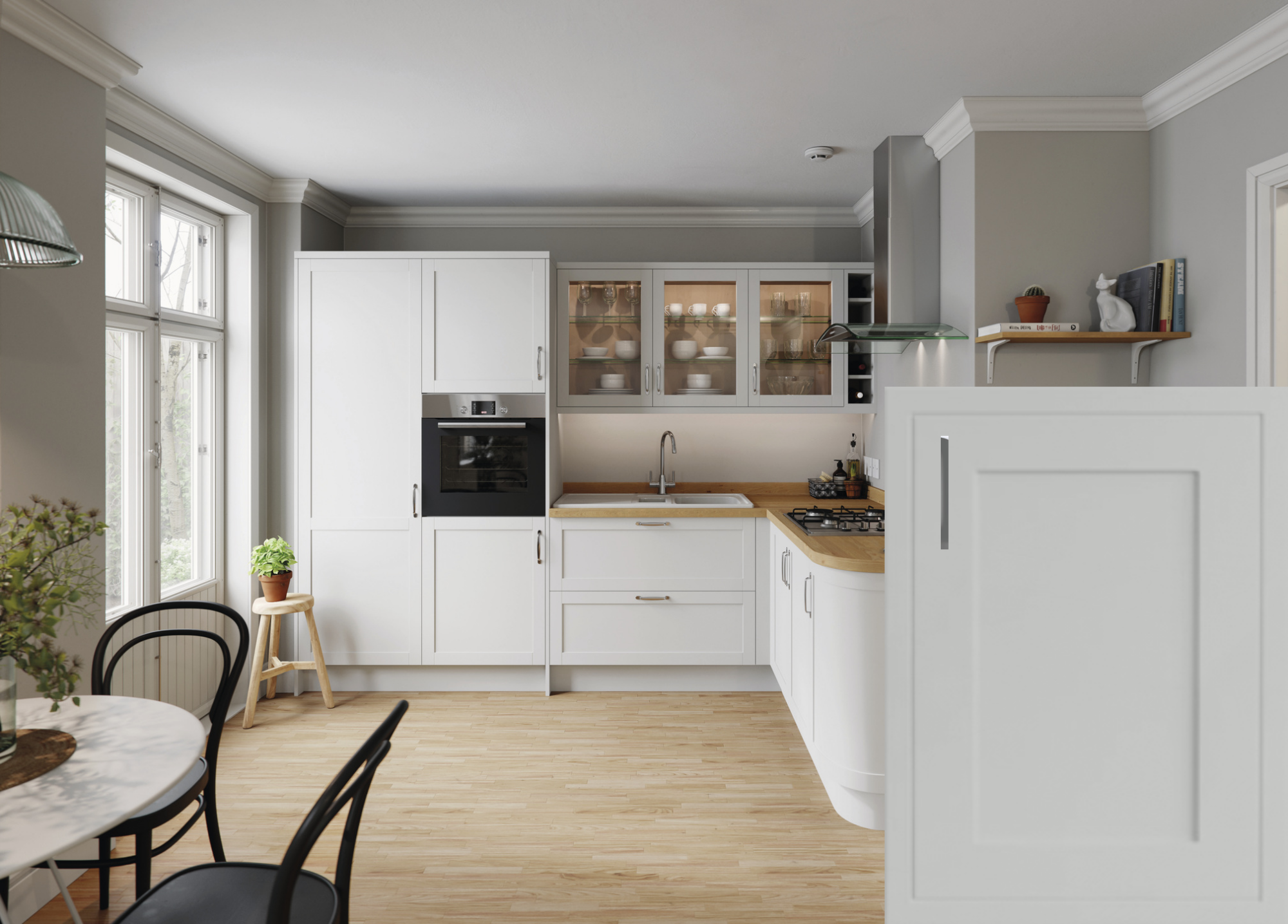 Featuring the classic style of a Shaker door with added detail creating the stylish look of an elegant inframe kitchen.